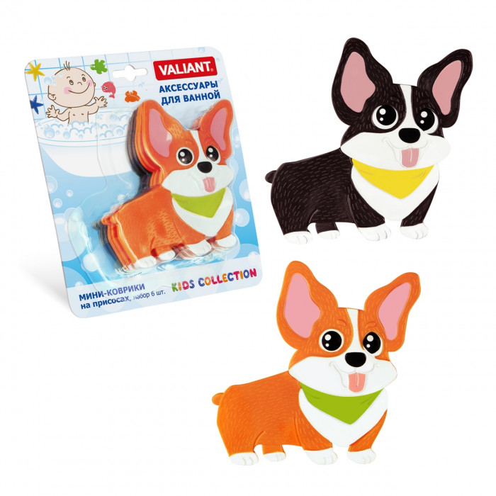 Набор мини-ковриков "Корги" состоит из 6 фигурок. Он станет оригинальным элементом дизайна и надежной противоскользящей опорой на поверхности ванны, на кафельной плитке или стенке душевой кабины.