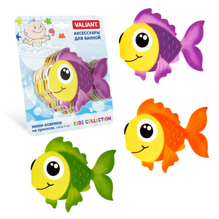 Набор мини-ковриков "Рыбка" состоит из 6 фигурок. Он станет оригинальным элементом дизайна и надежной противоскользящей опорой на поверхности ванны, на кафельной плитке или стенке душевой кабины.