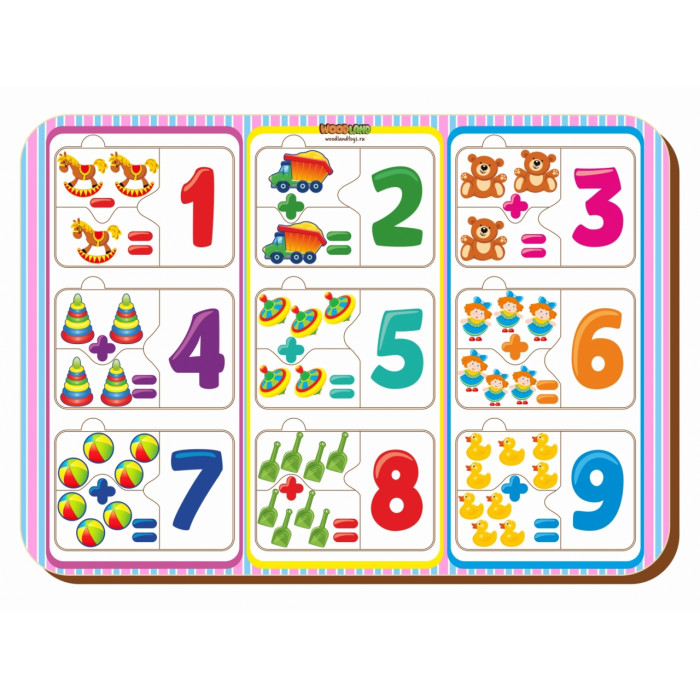 Яркие крупные цифры помогут ребенку освоить порядковый счет, разовьют глазомер и координацию движений рук.