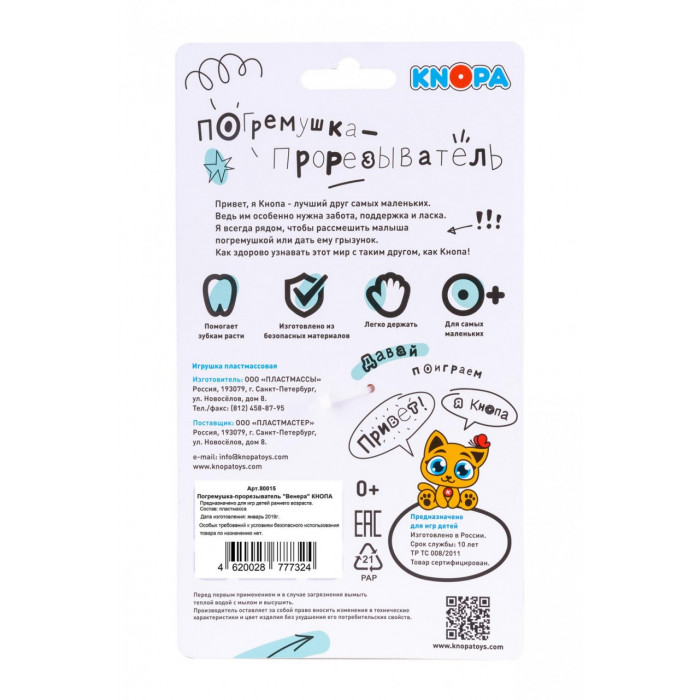 Универсальная погремушка-прорезыватель "Венера" с массажными рельефными бугорками для массирования десен и сенсорной стимуляции пальчиков малышей — прекрасный подарок крохе!