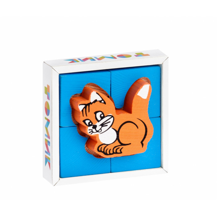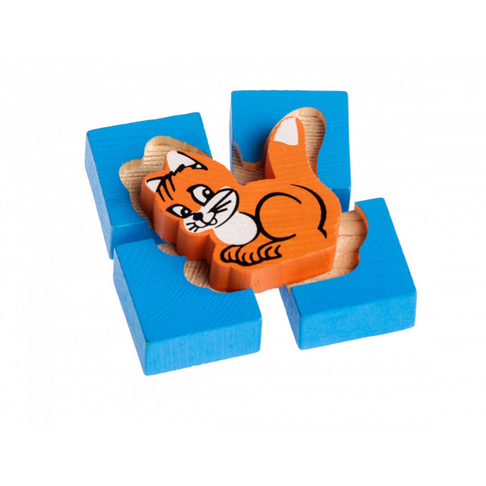 Собирайка "Кошка" в процессе игры превращается в настоящую головоломку. Состоит она из 4 кубиков с вырезанным отверстием под фигурку, которую нужно установить на правильное место.