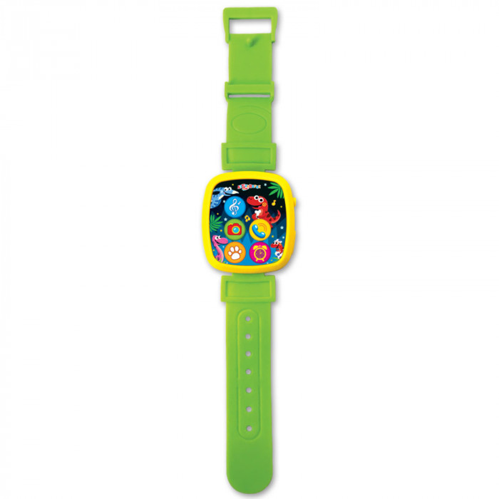 Эти часики с милым динозавриком — не простые, а музыкальные! Нажимай на кнопочки — слушай песенки ("Если нравится тебе, то делай так", "Пусть бегут неуклюже", "Арам зам", "Танец утят"), мелодии ("Енка", "Итальянская полька" и "Немецкая полька") и забавные звуки, пой и танцуй! Надень часики на руку — стань самым модным и классным!