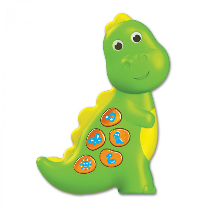 Яркий музыкальный динозаврик - плеер для самых маленьких. На кнопочках игрушки - 6 песенок и мелодий ("Если нравится тебе, то делай так", "Какой чудесный день", "Два веселых гуся" и др.), забавные звуки. Огоньки мигают под музыку и дарят радость малышам.