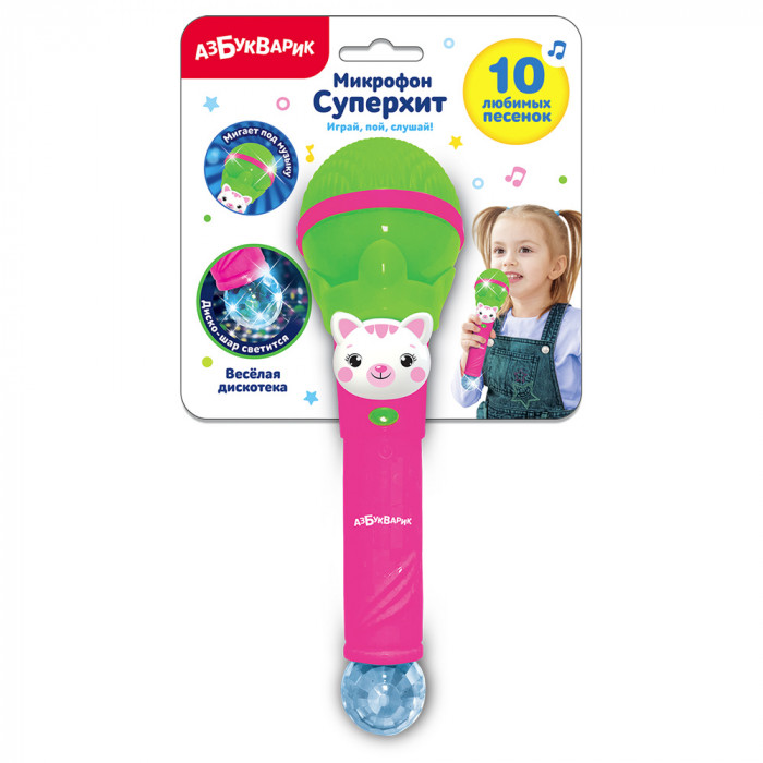 Что нужно для зажигательной детской дискотеки? Конечно, большой микрофон Суперхит с популярными детскими песенками и светомузыкой. Нажимай на кнопочку - слушай 10 веселых песенок из мультиков: