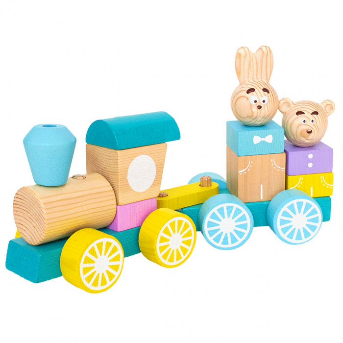 Паровоз с вагоном "Томик" сочетает в себе преимущества каталки и конструктора. Отлично подойдет в качестве одной из первых развивающих игрушек для малыша. Он изготовлен из экологически чистых материалов и окрашен безопасными красками на водной основе.