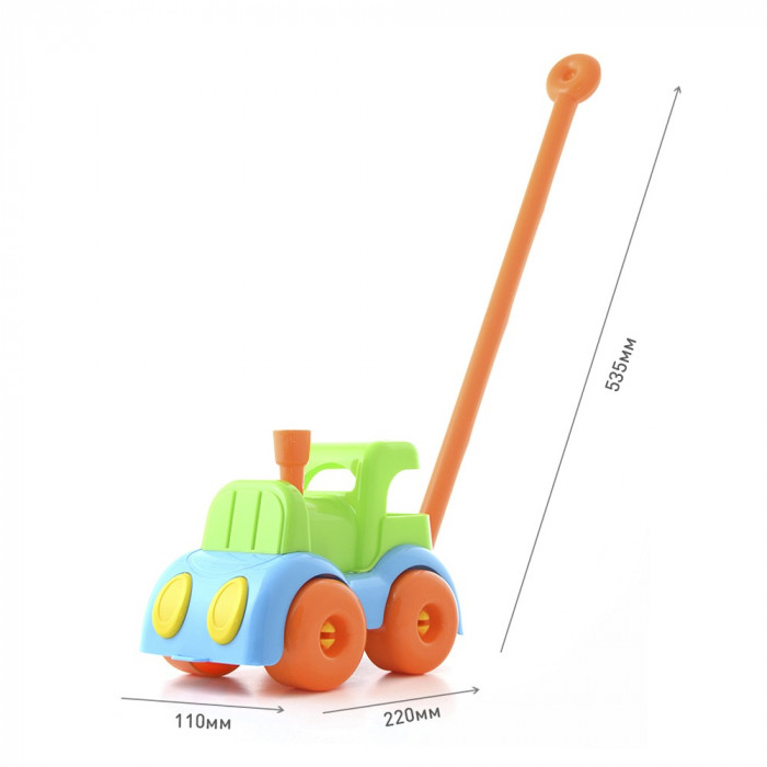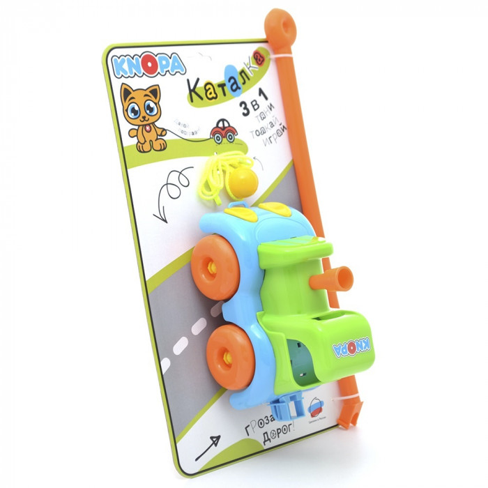 Игрушка-каталка с палкой, позволяет незаметно, в игре, малышу учится владеть своим телом, увереннее шагать, наклоняться и держать равновесие.