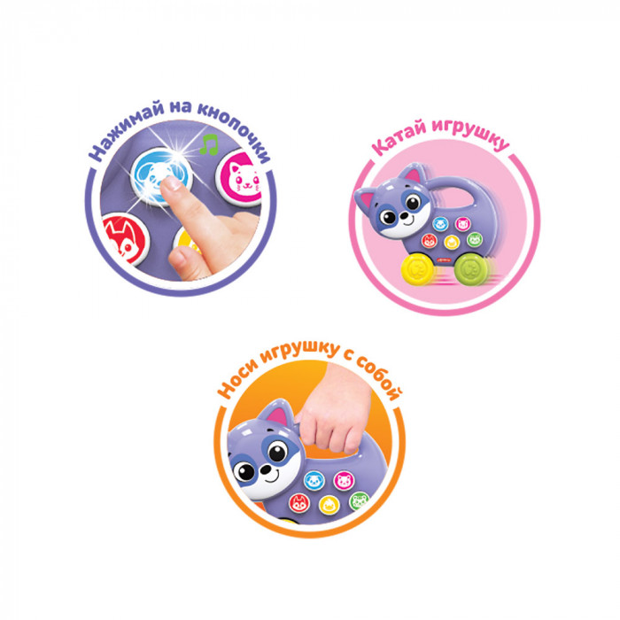 Во время звучания на кнопочках мигают огоньки. А катать лисенка на колесиках под музыку – это так весело! Отличная игрушка для маленьких непосед!