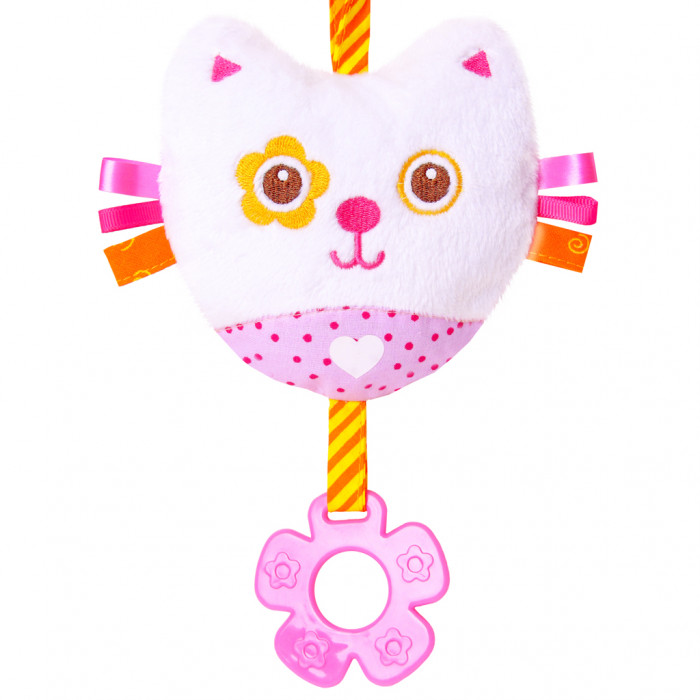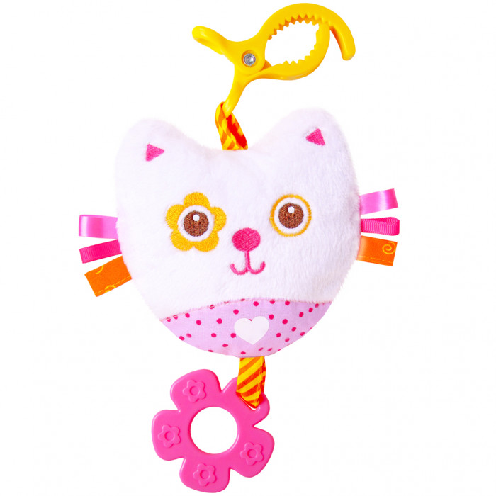 Веселый Котёнок легко крепится к любому типу коляски с помощью большой клипсы. Яркие цвета и разнообразие текстур положительно скажутся на тактильном и визуальном развитии ребенка. На Котёнке расположен 1 мягкий прорезыватель. Внутри Котёнка погремушка.
