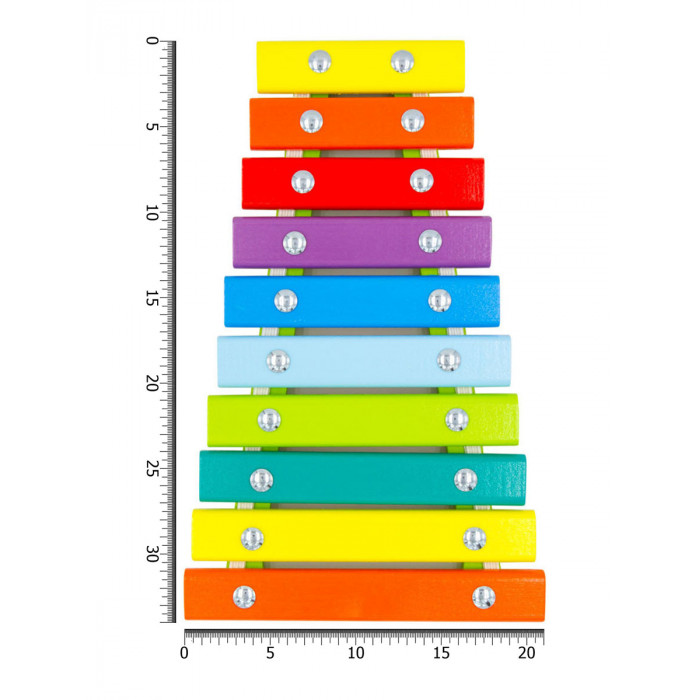 Ксилофон - музыкальная игрушка, состоящая из 10 деревянных планок. Они окрашены в разные цвета и издают различные по высоте музыкальные звуки.
