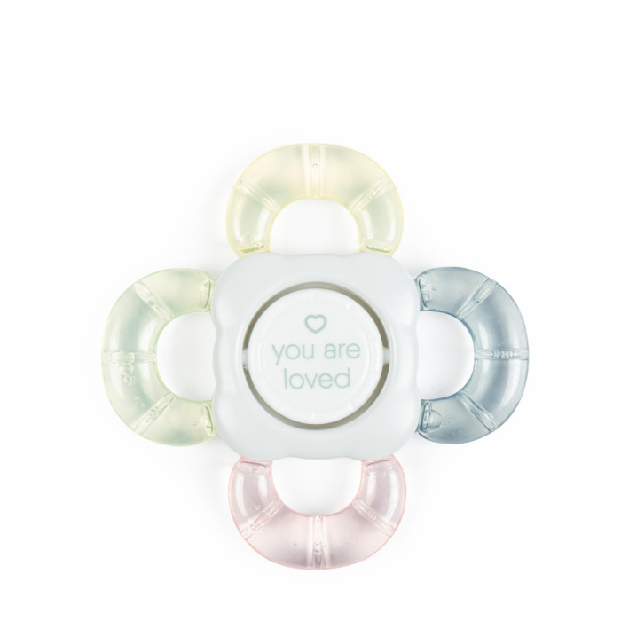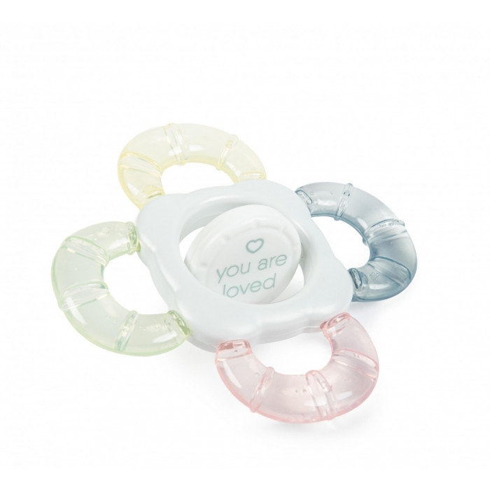 Прорезыватель выполнен в виде основания и 4 колец. Именно эта причудливая форма и позволяет ребенку хорошо держать его в своих маленьких ручках. Проникая в труднодоступные места ротовой полости, прорезыватель массирует десны, тем самым облегчая боль от прорезывания зубов.