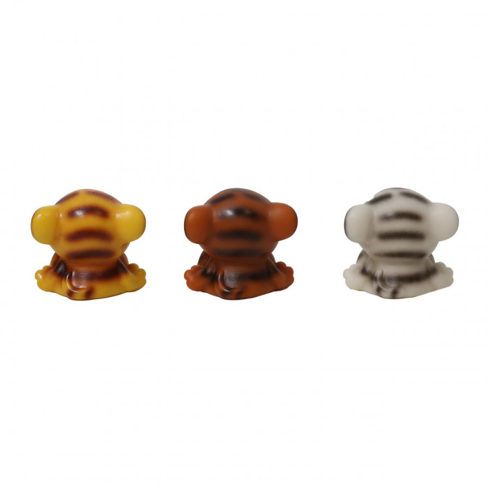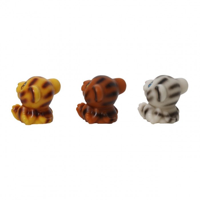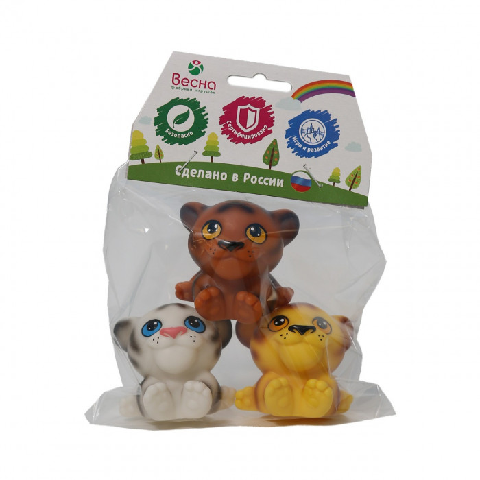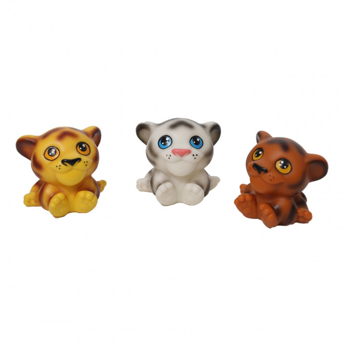 Тигрята выполнены из высококачественного и безопасного материала ПВХ — пластизоля. Они легко помещается в ладошку ребенка, приятные на ощупь. Материал легко моется, поэтому игрушки можно использовать в разной природной среде — песок, вода, трава и т.д.