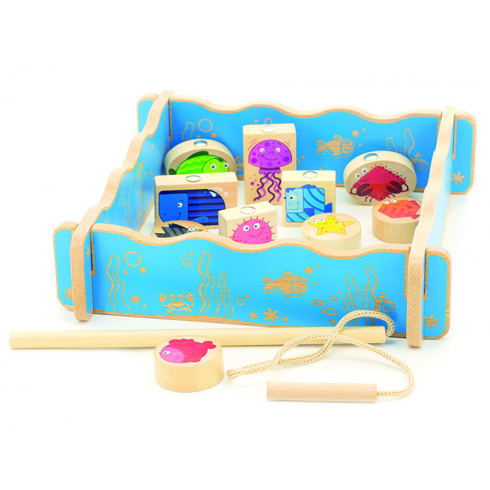 Игровой набор "Магнитная рыбалка", развлечет малышей и позволит им развить ловкость и сноровку. В набор входят удочка, фигурки рыбок и бассейн. Все предметы ярко окрашены, что порадует детей и придаст игре большую реалистичность. Цель игры - выловить всех морских животных из аквариума, используя удочку. Стилизованные рыбки прикрепляются к удочке при помощи встроенных магнитов.