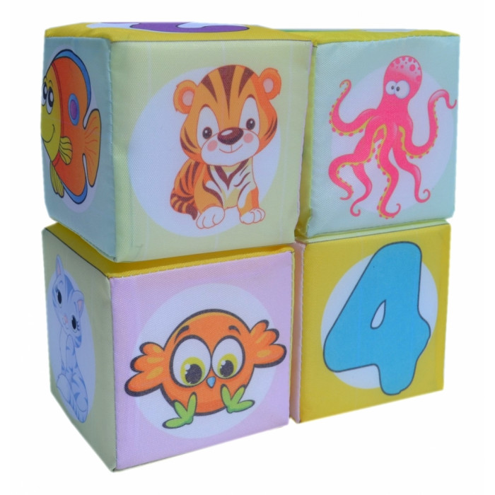 В наборе 4 кубика размером 7×7 см. При поставке цветовые решения могут отличаться.