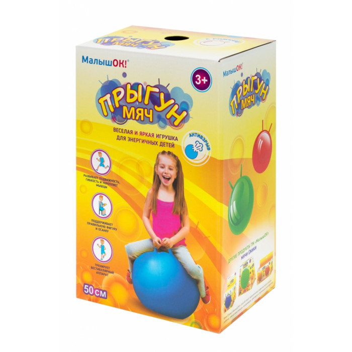 Мяч Прыгун - это удивительная игра и эффективный тренажер.Сидя верхом на мячике ребенок развивает координацию, укрепляет мышцы и формирует правильную осанку. Мяч изготовлен из экологически чистого, безопасного, эластичного и прочного материала.
