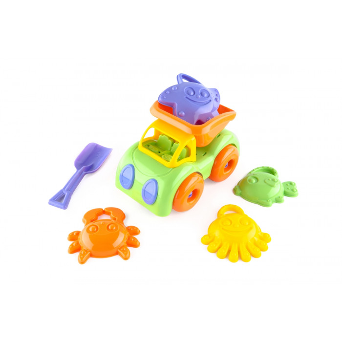 Песочный набор для детей от 3 лет. В набор входит самосвал, цветной совочек и 4 формы для игры в песочнице в виде морских обитателей (крабик, рыбка, морская звездочка, медуза). Яркий набор, выполненный из высококачественной и безопасной пластмассы. Игра в песочнице с данным набором способствует развитию координации движения и воображению.