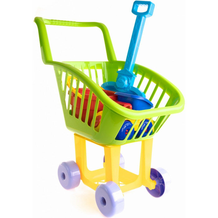 С таким набором будет интересно играть и девочке, и мальчику. В него входит несколько формочек, лопатка, ведро и тележка. В тележке малыш может самостоятельно перевозить игровые принадлежности и емкости с песком.