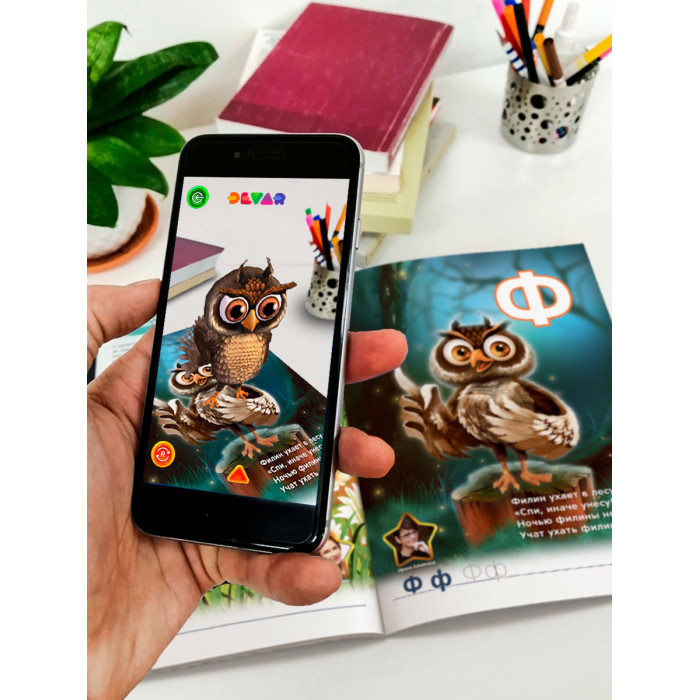 Твердый переплет и качественная бумага. Благодаря применению технологии дополненной реальности дети запоминают буквы играя, намного интенсивнее, чем с обычной азбукой.