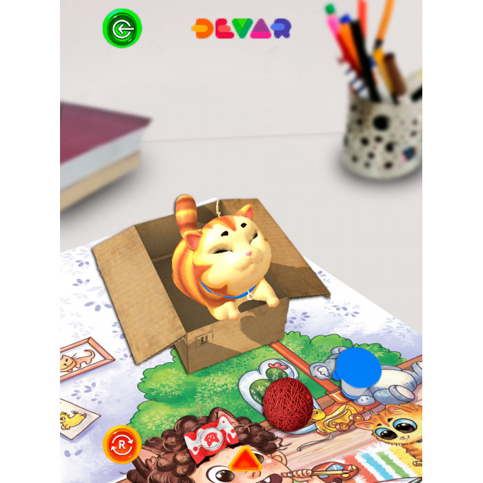 Не забудьте встретиться с героем книжки в дополненной реальности! Домашний рыжий котенок очень любит поиграть с солнечным зайчиком, поглядеть в окошко и, конечно же, поесть. А еще он тоже любит стихи! Включайте звук погромче и слушайте их вместе с рыжим проказником.