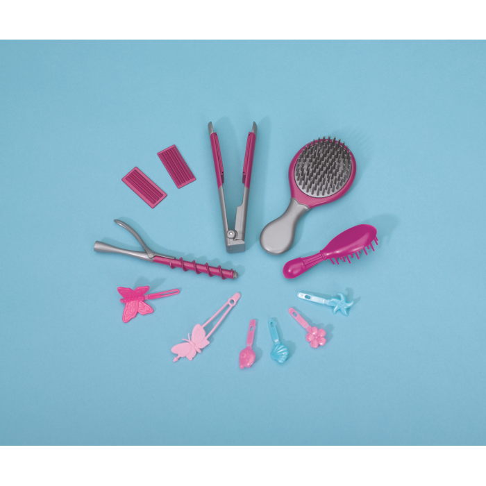Какое любимое занятие у любой девочки? С уверенностью можно заявить, что это делать прически! С помощью игрушечных плойки для завивки, утюжка для выпрямления волос и создания эффекта гофрированных волос, а также расчески можно делать множество различных вариантов причесок для Штеффи, которые к тому же можно украсить стильными заколочками. Не стоит забывать и о девочке-стилисте Штеффи! Для нее в наборе есть расческа побольше и набор заколок для волос, которые дополнят ее модный образ. А чтобы настоящую модницу и будущего стилиста можно было распознать издалека, на телефон или на ключи можно прикрепить миниатюрный брелок в виде расчески.