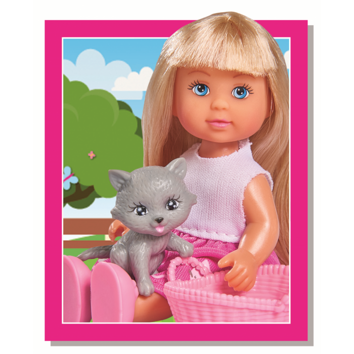 У малышки Еви есть два четвероногих друга - дымчатая кошечка и белоснежный щенок. Они прекрасно ладят друг с другом! Еви любит ухаживать за своими питомцами: расчесывать их пушистую шерстку, давать каждому любимое лакомство и после веселых игр Еви читает им сказки, пока они отдыхают в своих уютных кроватках.В игровой набор "Домашние питомцы" входит куколка Еви в туфельках и милом платьице с мордочками животных, фигурки кошечки и щенка, а также 12 аксессуаров для питомцев.