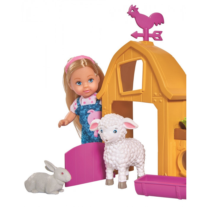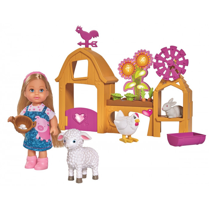 Настоящая ферма с домашними животными и грядкой спелых овощей! Кто у нас тут живет? Кролик, овечка и курочка. Для каждого животного на ферме оборудован свой уютный домик.