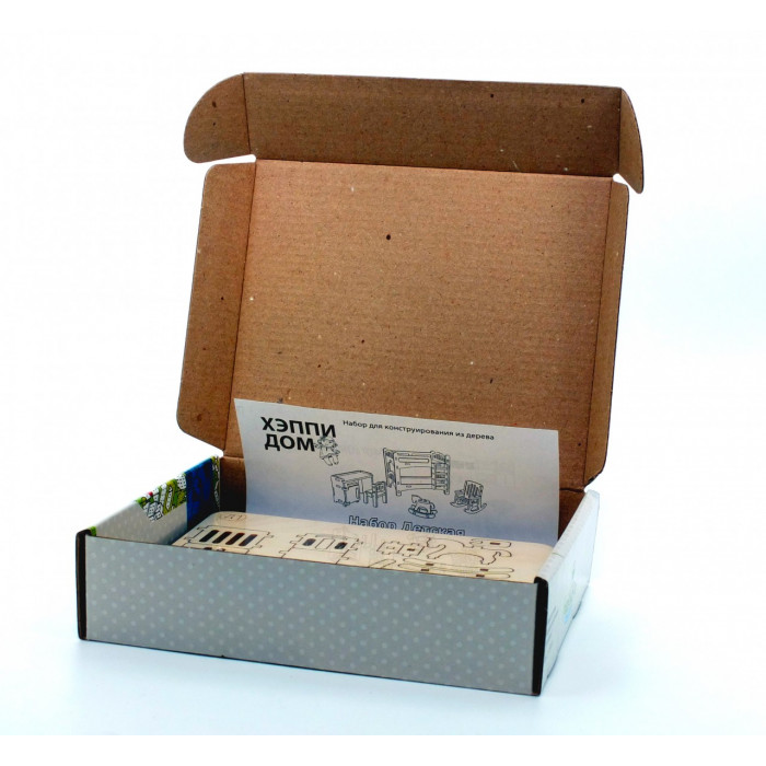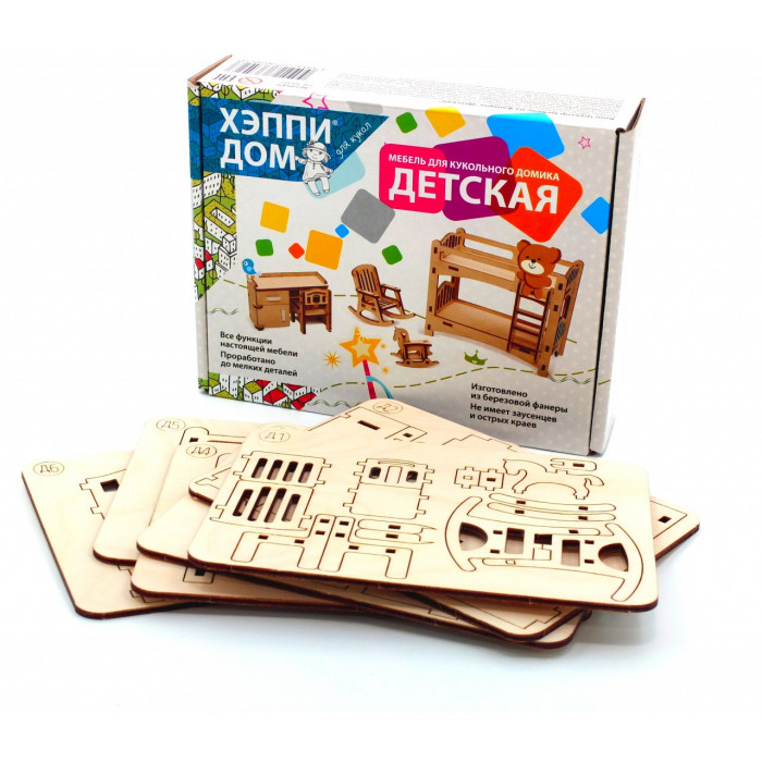 Мебель выполнена из березовой фанеры. Все детали собираются без клея - просто вставляются в пазы, крепления очень прочные и надежные.