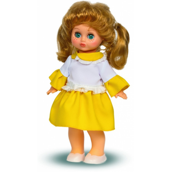 Кукла одета в платье и туфли. Производитель оставляет за собой право изменения цветовой гаммы одежды и волос куклы, цвет глаз может варьироваться. Игровые и дидактические возможности куклы: при нажатии на звуковое устройство, вставленное в спинку, кукла произносит фразы. Наличие элементов одежды, которые легко снимаются и надеваются, разнообразит возможности сюжетно-ролевых игр с куклой, в процессе которых развивается мелкая моторика и творческое воображение ребёнка. Прекрасные прошитые волосы из качественного нейлона, похожие на натуральные, можно завивать, расчесывать, укладывать в разные прически, меняя образ куклы.