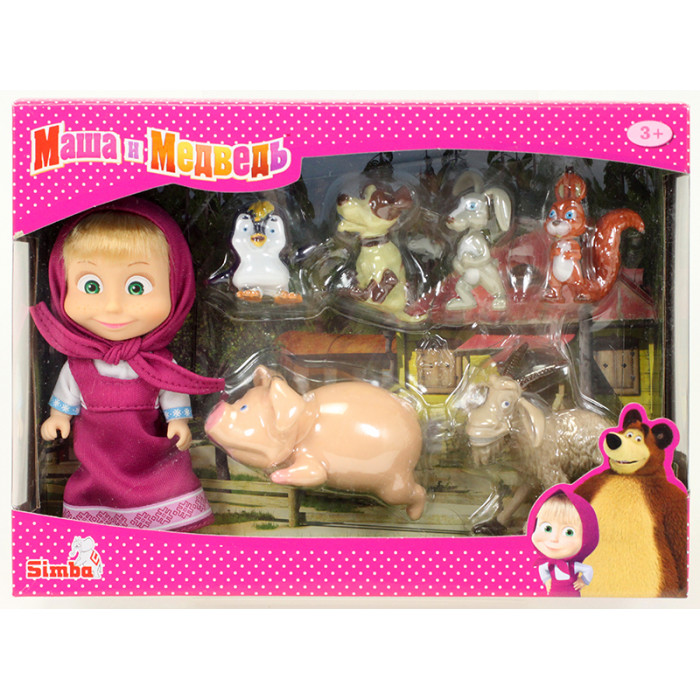 В деревне столько разных животных, что определиться, с каким зверьком поиграть, бывает совсем не просто. Маша дружит со всеми! Именно поэтому в набор входят аж 6 её любимых зверьков: кролик, поросенок, собачка, белочка, козленок и даже пингвин, которого обычно на даче или в деревне не встретишь - только в гостях у Миши!