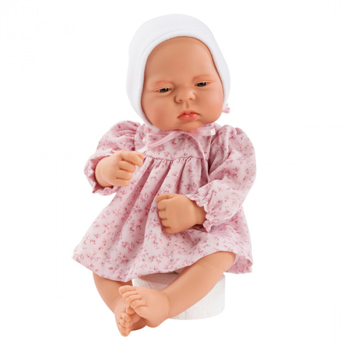 Реалистичный реборн-девочка Лючия из новой коллекции ASI. Имеет половые различия. Полностью выполнена из винила приятного на ощупь и реалистичного по цвету. Кукла не имеет волос. Можно играть в дочки-матери, купать, пеленать. Подходит одежда для недоношенных детей. На кукле надето платье розового цвета и шапочка на завязках.