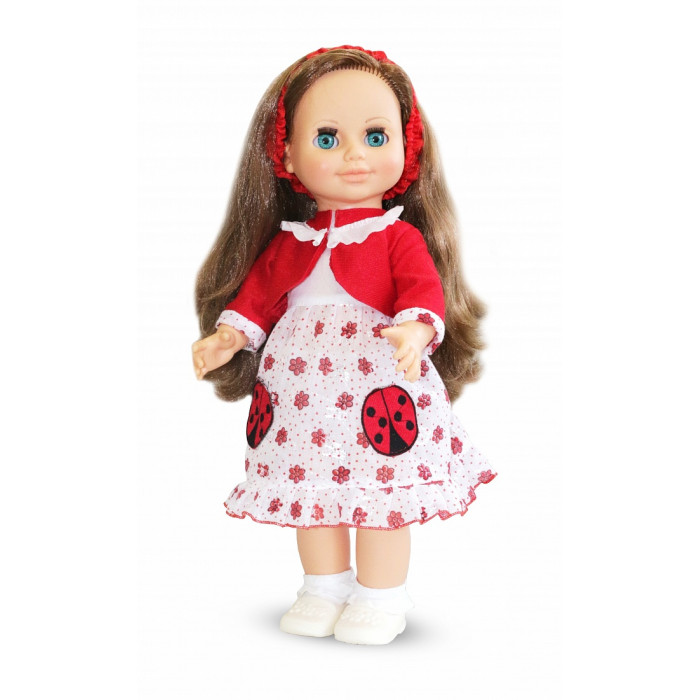 Куклу Анна отличает новый, непохожий на других образ. Это очаровательная кукла-девочка с открытым взглядом, пушистыми ресницами, обаятельной улыбкой и роскошными волосами. Кукла представлена в комплекте одежды летней коллекции. Платье без рукавов и воротника с застежкой сзади. Платье из вышивной ткани белого цвета с рисунком. Спереди на платье вышивка "Божьи коровки". Модное болеро, отороченное тесьмой "Рюш" и ободок из яркого шелка завершают костюм. На ножках белые носочки и туфли-балетки.