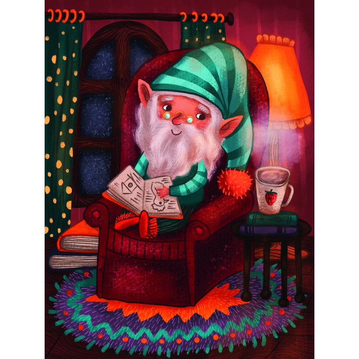 Когда за окном ночь, добрый гном очень любит почитать интересную книгу в своем уютном кресле и выпить чашечку ароматного чая перед сном!