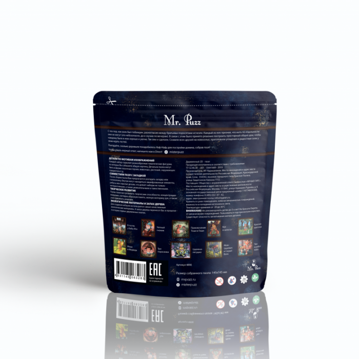 Каждый набор этих пазлов индивидуален, состоит из уникальных тематических фигурок и деталей необычной сцепки по мотивам иллюстраций. После сборки вам предлагается разгадать зашифрованную загадку-головоломку, что делает наборы интерактивными и даже немного таинственными.