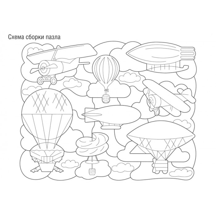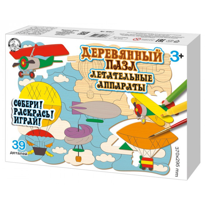 Деревянный пазл "Летательные аппараты" входит в серию деревянных пазлов для малышей "Собери! Раскрась! Играй!".