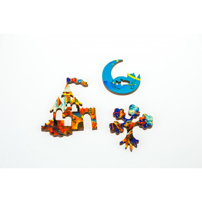 В деталях картины скрыта таинственная история подлунного мира. Здесь каждую ночь небесные жители — ангелы и гномы, пегасы, изящные кошки и птицы — дарят людям сновидения.