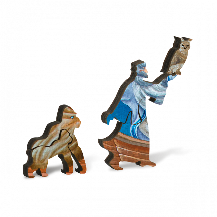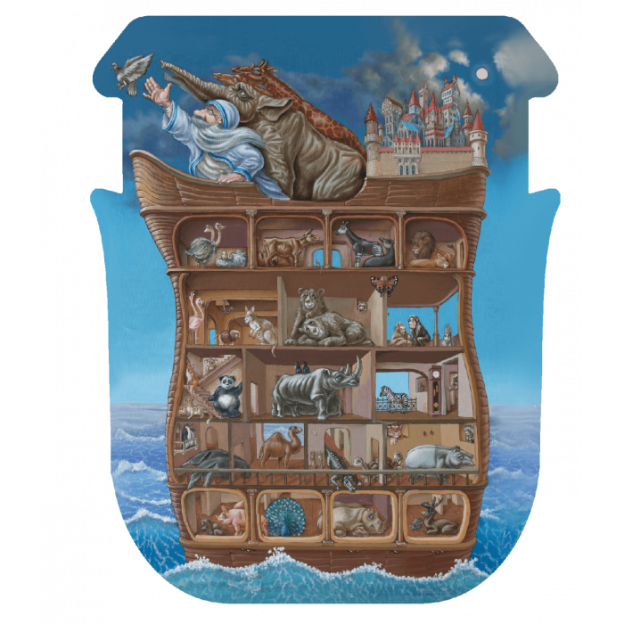 Пазл исполнен в виде большого корабля со множеством отсеков, внутри которых размещены животные - каждой твари по паре. В деталях набора - ровно 100 фигурок животных. Они символизируют начало новой жизни каждого вида после Всемирного потопа.