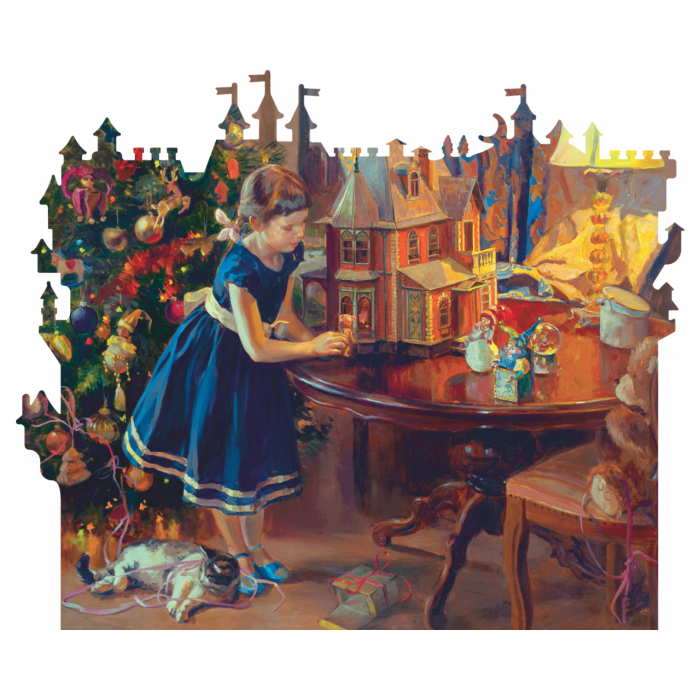 Вырезанная по периметру картина в стиле волшебного замка из кукольного царства погружает атмосферу детских фантазий. Здесь развернулось целое театральное представление - с героями и фантазиями, с сюрпризами и находками.