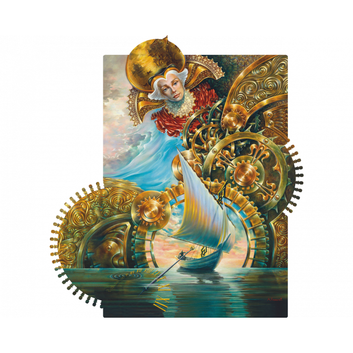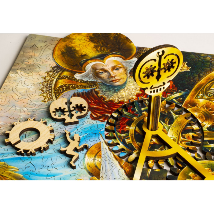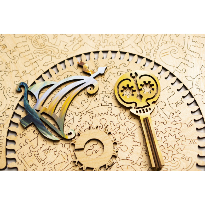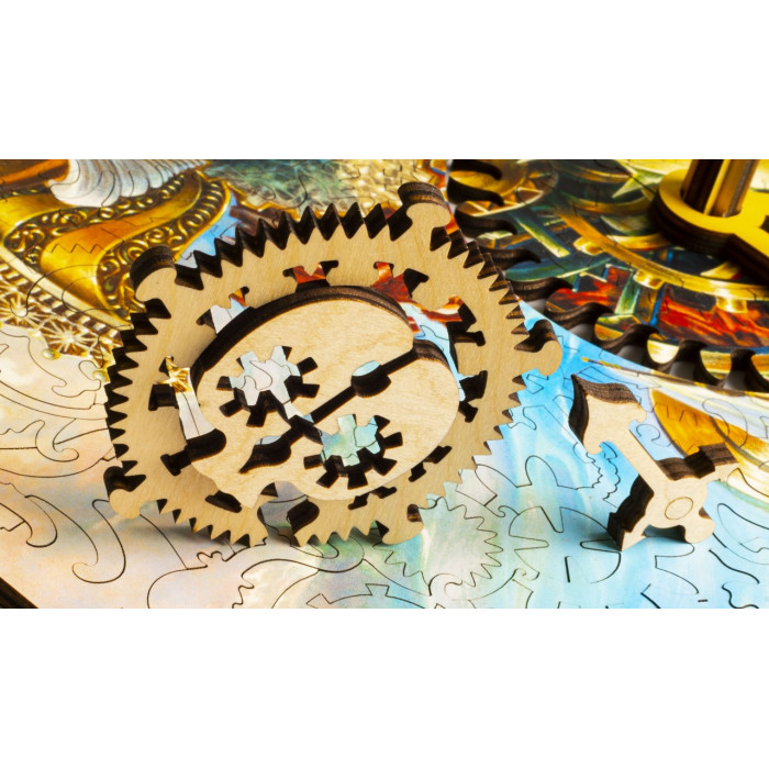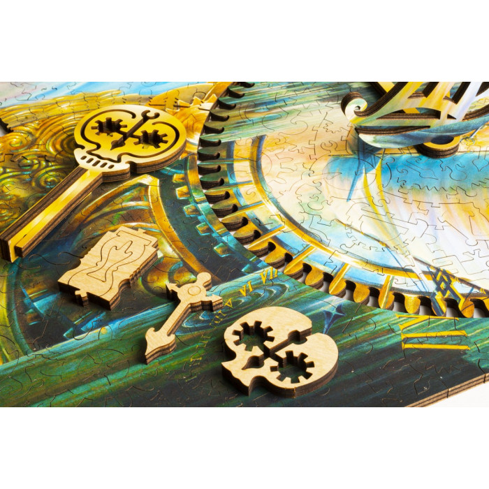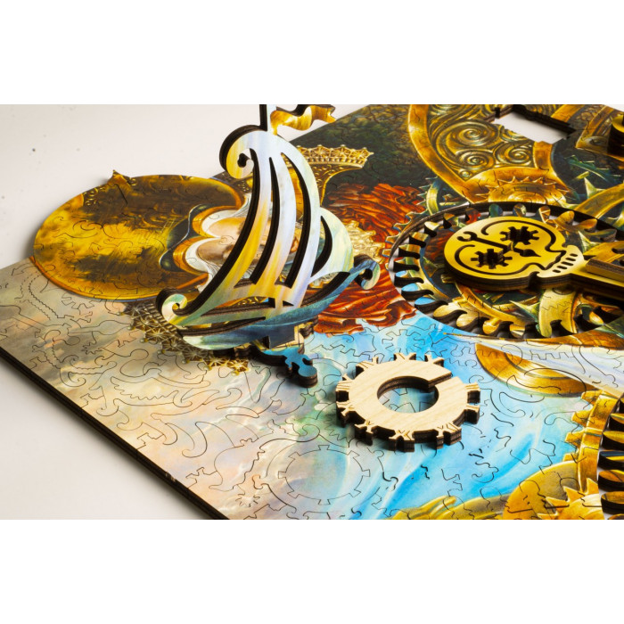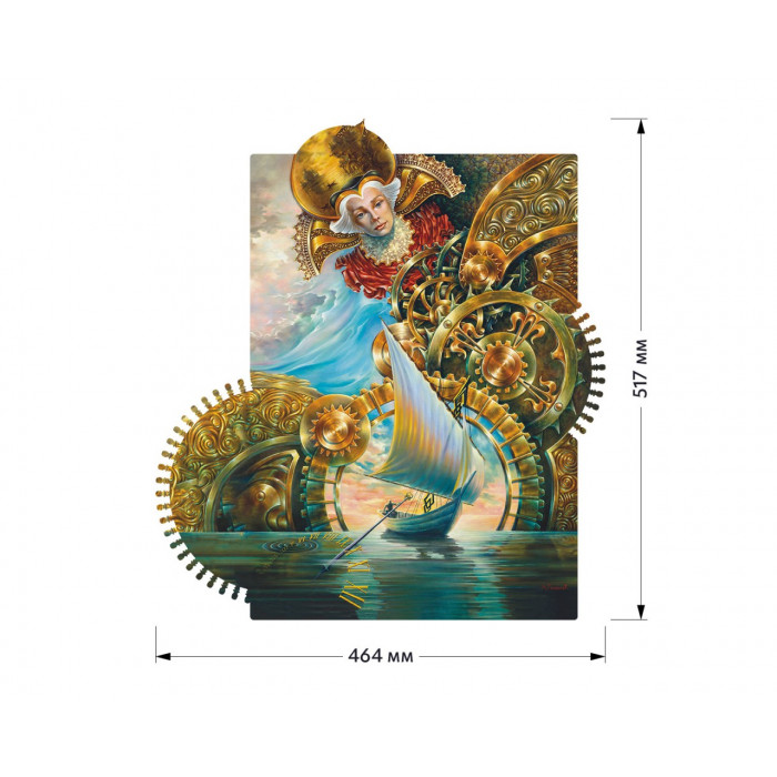 Набор-загадка, набор-движение "Часовщик" - это пазл с движущимся механизмом "Иллюзия времени". В собранном пазле корабль движется под влиянием шестеренок гигантского часового механизма, являя собой образ судьбы относительно восприятия времени.