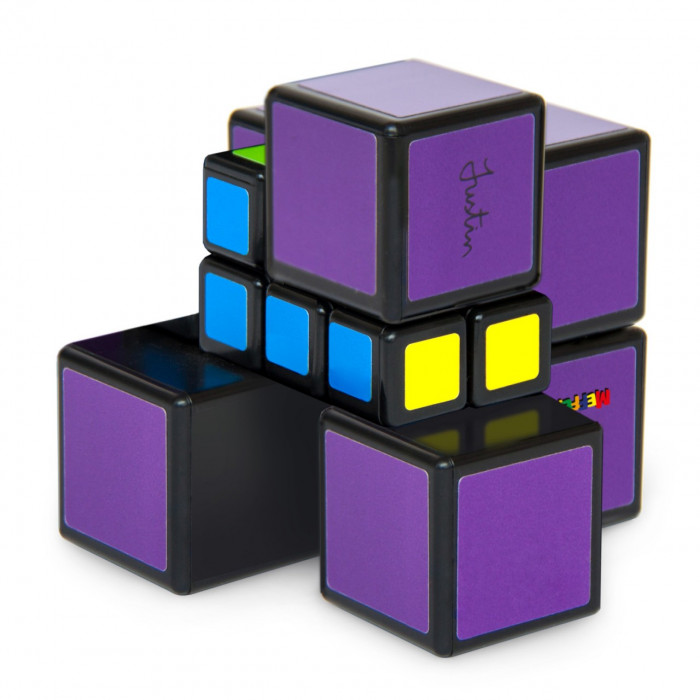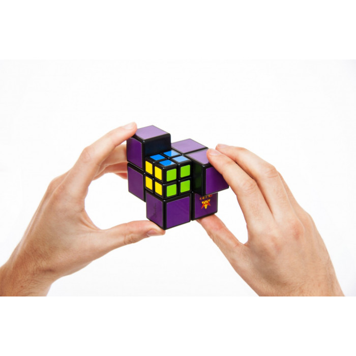 Большой одноцветный кубик 2×2 у которого вместо одного из элементов мини-кубик 2×2, но уже разноцветный! Перед вами не кубик 2×2, а экзотическая разновидность кубика Рубика 3×3, у которого есть центральные элементы — это внутренние углы мини-кубика, вокруг которых и крутятся элементы головоломки.