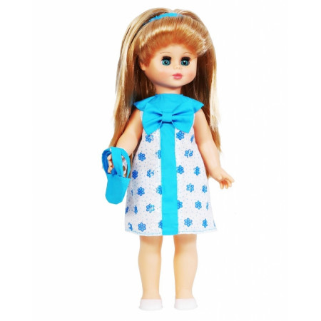 У прелестной куклы Оли от фабрики Весна небесно-голубые глаза и длинные золотистые локоны. На ней надеты ситцевое платье с бантом и белые туфельки. У Оли закрываются глазки, и она умеет разговаривать. При нажатии на звуковое устройство, вставленное в спинку, кукла произносит различные фразы.