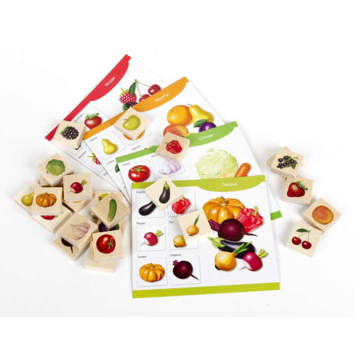 Это тематическое лото познакомит малышей с обычными для нас овощами, фруктами и ягодами. Оно рекомендуется для детей от 3-х до 5 лет и рассчитано на 2 или 4 участников.