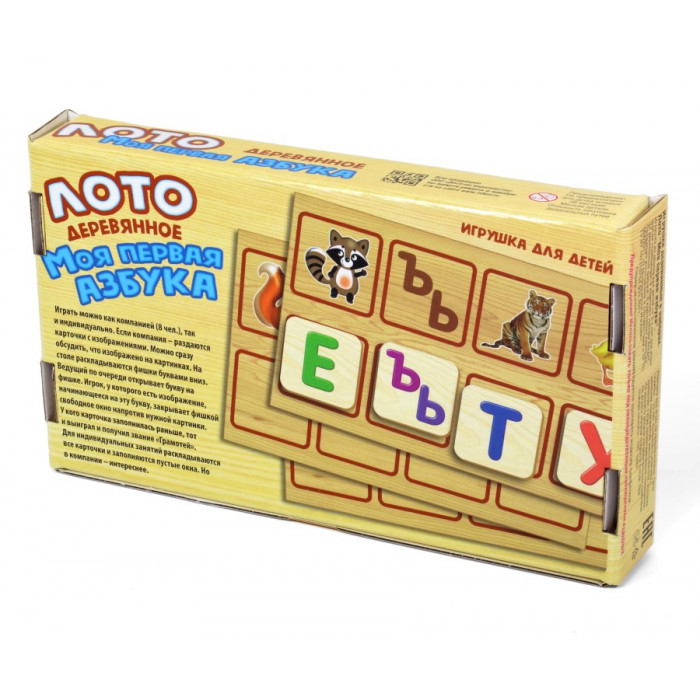 В лото деревянное "Моя первая азбука" можно играть как компанией (8 человек), так и индивидуально.