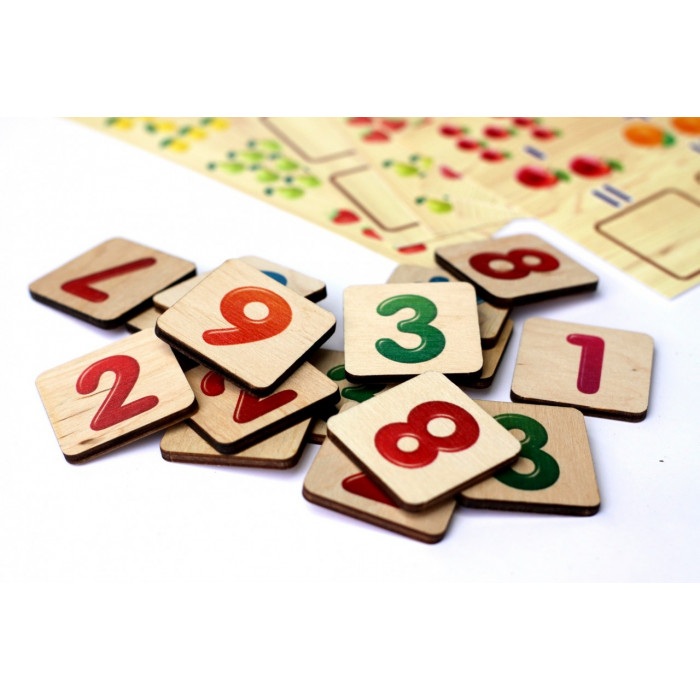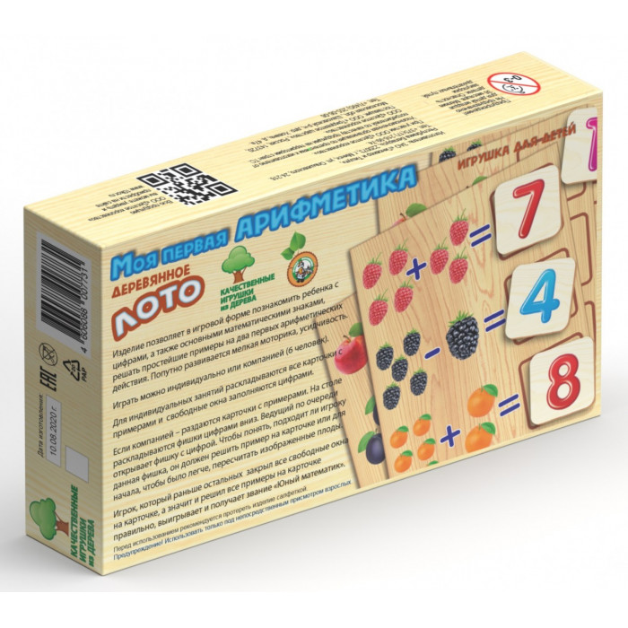 Лото с деревянными фишками научит ребенка первым арифметическим действиям.
