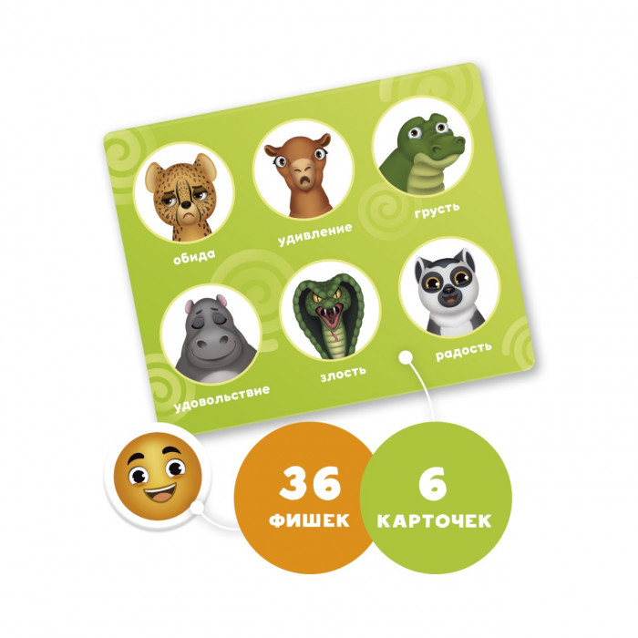- Ведущий достаёт одну фишку, показывает игрокам и называет эмоцию.
