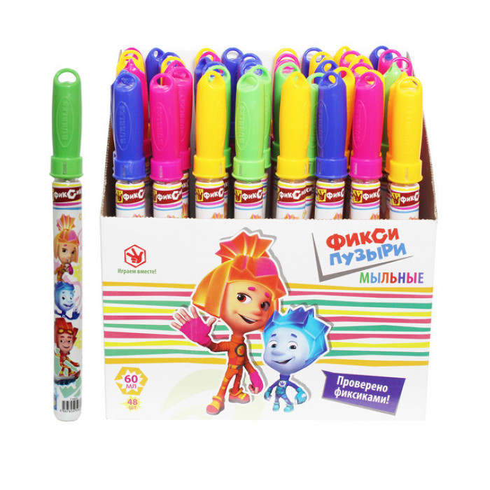 "Фиксики" - это мыльные пузыри в красочном тубусе яркой броской расцветки, с крышечкой и продолговатым диспенсером.