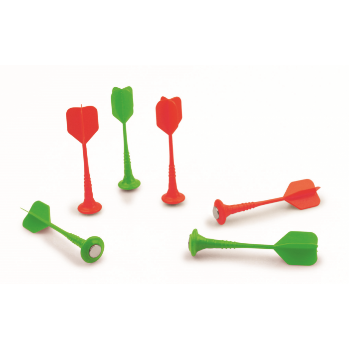Замечательная игра уникальна по своей концепции и дизайну. Магнитный холст можно повесить двумя разными способами. Дротики сделаны из пластика с металлическим наконечником. Не острые! Поэтому игра полностью безопасна для детей. Холст и 6 дротиков хорошо упакованы в тубус из прочного картона.