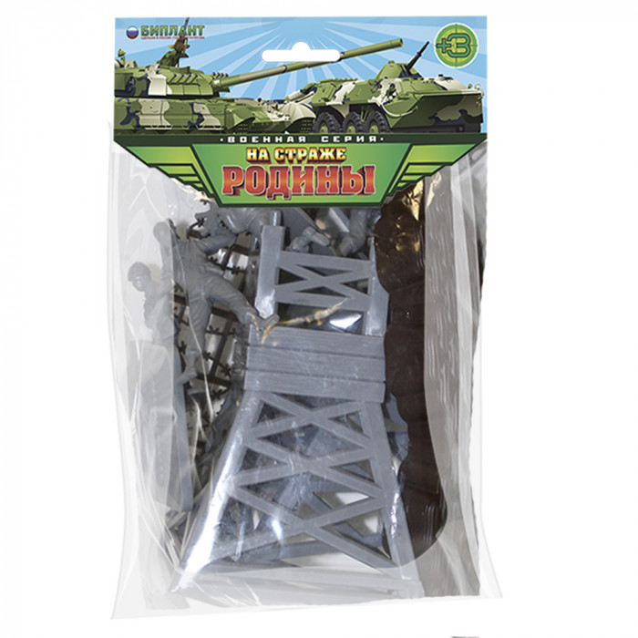ВОЕННАЯ СЕРИЯ "НА СТРАЖЕ РОДИНЫ" позволит побывать в мире приключений и риска. Погружаясь в игрушечный мир солдатиков можно оказаться в эпицентре военных действий, примерить роль генерала или простого солдата, защитить Родину от вражеского нападения, отразить атаки и захватить в плен противников, стать настоящим героем. Преимущества: живое общение, интерес к истории, тактическое мышление, коммуникативные навыки. Комплектация: ограда-1шт, колючая проволока-1шт, вышка-1шт, солдатики-10шт. Индивид. упаковка: -ДВШ: 240 х 170 х 90 мм