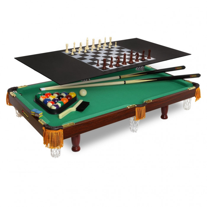 Многофункциональный игровой стол, включающий 4 игры: американский бильярд, шашки, шахматы и нарды.