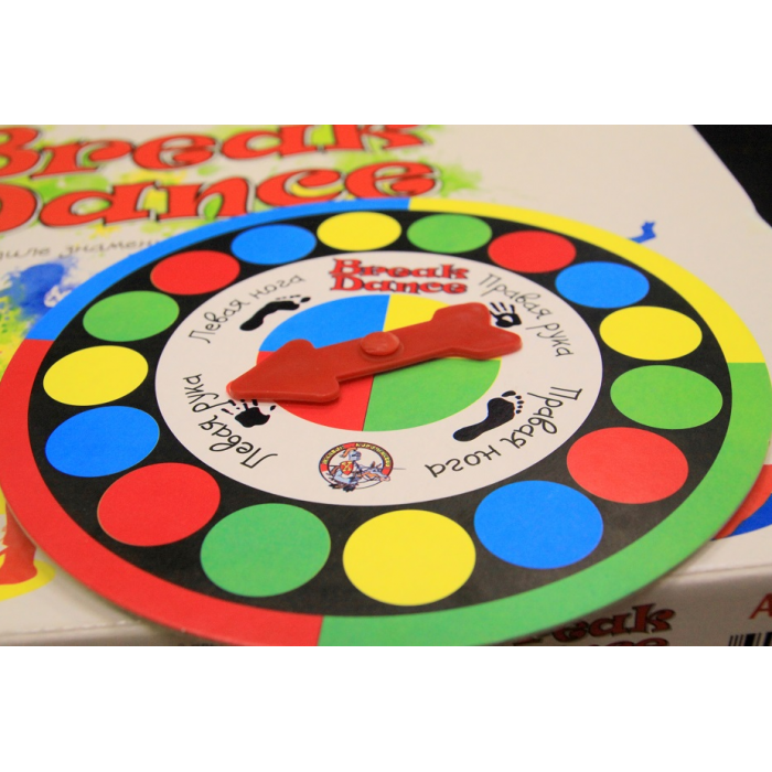 Для игры в "Брейк Данс" поле надо расстелить на полу, снять обувь и выбрать ведущего, который должен крутить рулетку и называть комбинации игрокам. Например, если стрелка показывает на зеленую отметку с надписью "правая нога", то всем игрокам объявляется требование поставить правую ногу на зеленый кружок.