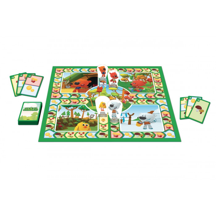 Начинает тот игрок, который самый последний смотрел мультфильм! Так что особым поклонникам Ми-ми-мишек — приоритет! У каждого участника — фишка для перемещения по своему квадрату игрового поля и 3 игровые карточки.