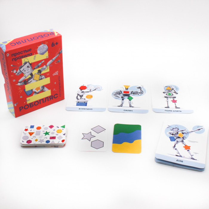 Найди робота с подходящим сочетанием фигур и цветов. Повторяй движение и забирай победную карту!